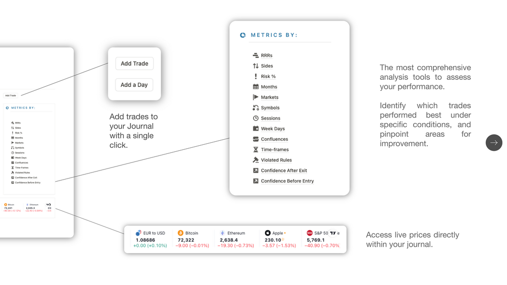• Comprehensive Insights: Gain in-depth insights to fully understand your trading performance to make smarter, data-driven decisions.